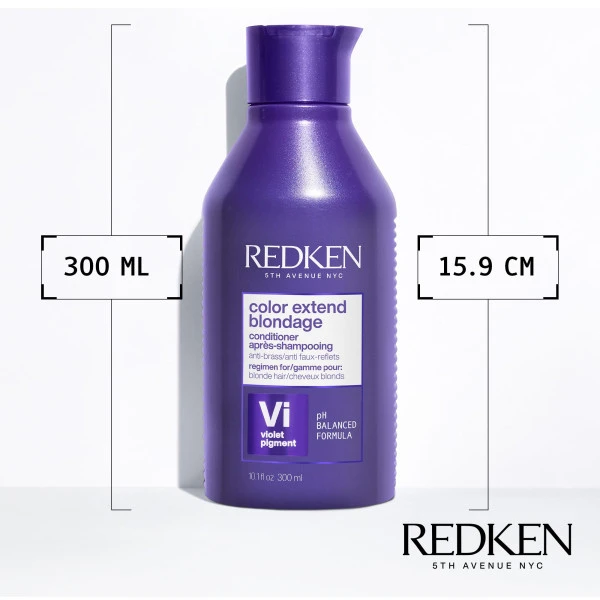Après-shampooing neutralisant Color Extend Blondage Redken, pour sublimer le blond en luttant contre les reflets jaunes indésirables.