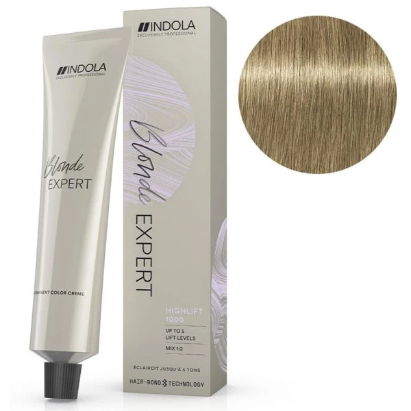 La gamme Blonde Expert d’Indola est une gamme de coloration et de décoloration spécialisée dans les blonds. La coloration 1000.22 est une coloration professionnelle qui permet d’éclaircir et de nuancer jusqu’à 5 tons en une seule étape. Cette coloration blonde est adaptée aux bases naturelles de 6 à plus claires. Grâce à la technologie Hair Bond (technologie renforçatrice des liaisons capillaires) contenue dans sa formulation, la coloration Blonde Expert Indola réduit significativement les dommages des cheveux.