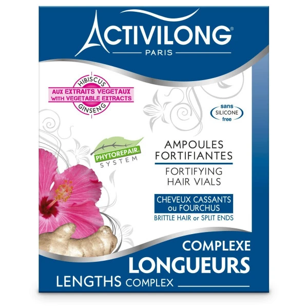 Les ampoules fortifiantes Complexe longueurs d’Activilong permettent de rĂ©parer, revitaliser et renforcer les cheveux cassant ou fourchus. Ce complexe est formulĂ© Ă base de Ginseng et de fleur d’Hibiscus. Les ampoules fortifiantes Complexe Longueurs renforcent les longueurs. Les pointes sont rĂ©parĂ©es et les longueurs rĂ©hydratĂ©es pour des cheveux plus forts, plus brillants et plus volumineux.