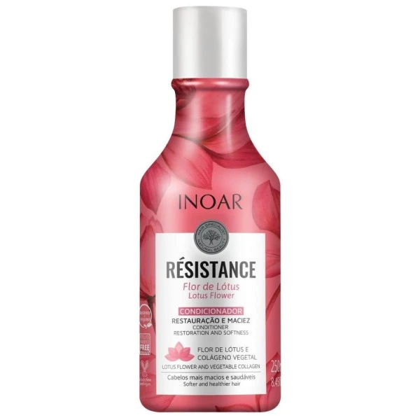 Conditionneur lotus Resistance Inoar, pour les cheveux affaiblis ayant besoin d’une revitalisation intense.