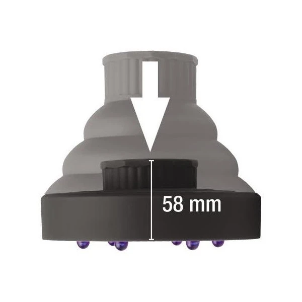 Une fois rétracté son faible encombrement facilite son rangement, très utile pour les professionnels en besoins de place. S’adapte à n’importe quel sèche-cheveux d’une longueur supérieure à 20 cm. Une fois rétracté le diffuseur fait 58 mm d’épaisseur. Système unique d’économie de place.