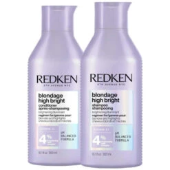 Le duo Ă©clat Blondage High Bright de Redken a pour mission de venir en aide aux cheveux blonds, souvent sensibilisĂ©s. Il est composĂ© du shampooing et de l’après-shampooing Blondage High Bright.