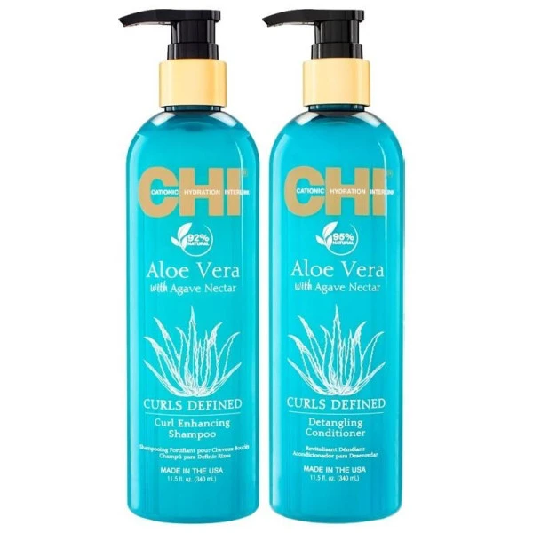 - Le shampooing Aloe Vera de CHI s’adresse aux cheveux bouclés. Il renforce et nettoie la chevelure avec délicatesse. Formulé à base d’huiles essentielles d’Aloé Vera et de 92% d’ingrédients d’origine naturelle, il fait la promesse d’une chevelure propre, douce, disciplinée et brillante.