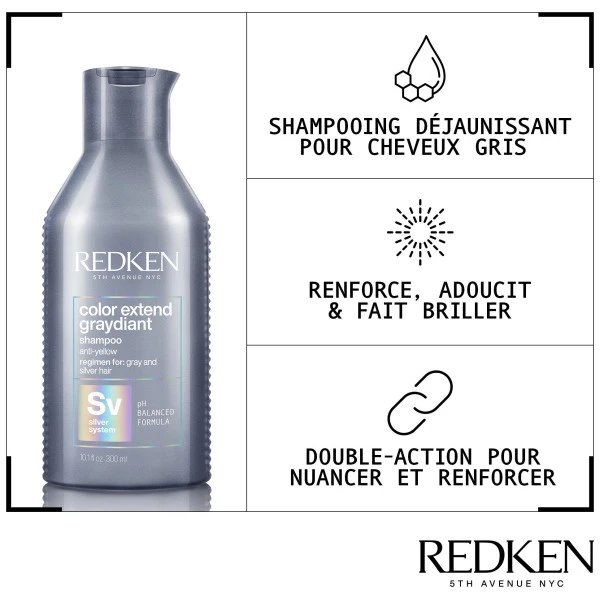 - Le shampooing Color Extend Graydiant nettoie en douceur les cheveux gris et blancs. Il repousse les reflets jaunes et oranges indisirable.