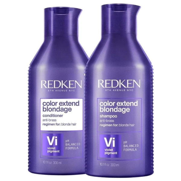 Duo neutralisant Color Extend Blondage Redken, spécialement conçus pour les cheveux blonds, naturels, colorés et/ou méchés.