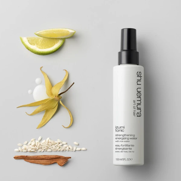 Le soin Izumi Tonic de Shu Uemura, est inspiré du yu-su-ru, un soin traditionnel japonais à l’eau de riz, izumi tonic est le soin ultime pour renforcer les cheveux et les protéger de la casse. L’eau de riz est réputée pour ses vertus fortifiantes et quand elle est combinée aux céramides, elle apporte aux cheveux densité, force et douceur. Les cheveux sont 10x plus forts*. Après 28 jours le résultat est somptueux, les cheveux se révèlent de plus en plus beaux : les cheveux sont comme plus lisses, soyeux, brillants et sains. L’utilisation de l’eau de riz dans les soins pour cheveux est une tradition Japonaise ancestrale. Izumi tonic s’inspire du yu-su-ru, le soin traditionnel japonais en combinant l’eau de riz avec les céramides pour renforcer les cheveux fins. Les résultats sont visibles sur les cheveux :