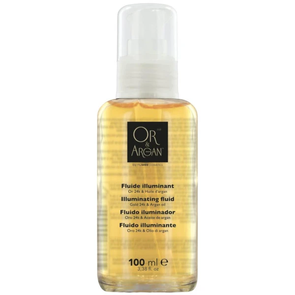 Le fluide illuminant Or & Argan à l’huile d’argan est enrichi à base d’or micro-actif et d’huile de noix tigrée. Activé par la chaleur du sèche-cheveux, le fluide pénètre instantanément le cœur du cheveu pour l’hydrater et le nourrir en profondeur. Effet gloss instantané, pour un cheveu brillant, lisse et doux. Les cheveux sont disciplinés, soyeux et resplendissants avec corps et légèreté. Il protège de la chaleur des séchoirs et fers à lisser ainsi que des agressions extérieures.