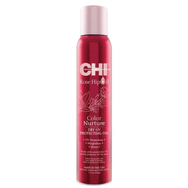 L’huile en spray anti-UV Rose Hip Oil de CHI est une huile sèche qui protège les cheveux colorĂ©s des UV. Ce soin coiffant multi-usages permet de prĂ©server l’Ă©clat de la couleur grâce Ă ses ingrĂ©dients anti-UV. Sa mission ? PrĂ©venir le ternissement prĂ©maturĂ© de la couleur ou toutes altĂ©rations dues aux facteurs de stress environnementaux. Des particules brillantes rĂ©flĂ©chissant la lumière dĂ©pose sur les longueurs et mettent en valeur les reflets de la couleur et lui donnent du relief.