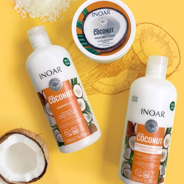 Duo shampooing & conditionneur Bombar Coconut Inoar, pour les cheveux normaux à secs.