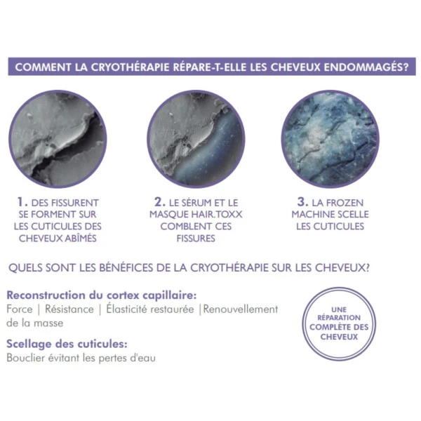 La machine va congeler les nutriments dans le cortex du cheveu en apportant toujours plus de nutrition et de protection.