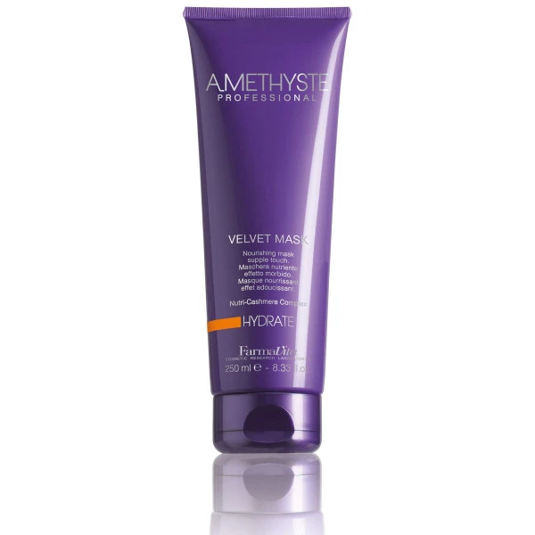 Masque nourrissant pour cheveux secs et sensibles. Le masque Amethyste Velvet Hydratant nourrit en profondeur et hydrate la fibre capillaire laissant une sensation de douceur se propager de la racine à la pointe des cheveux. Résultat, les cheveux retrouvent brillance et souplesse.