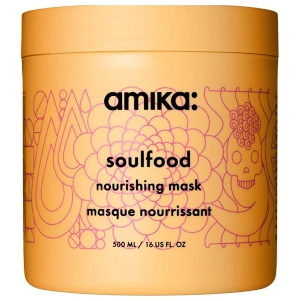 Masque Soulfood amika, idĂ©al pour tous les types de cheveux, en particulier ceux qui ont besoin d’une hydratation en profondeur.