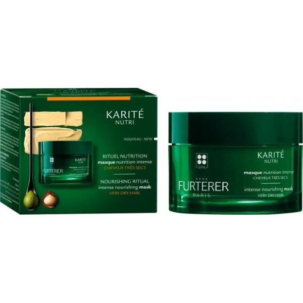 Masque nutrition Karité Nutri René Furterer, formulé avec 100%, pour nourrir les cheveux très secs.