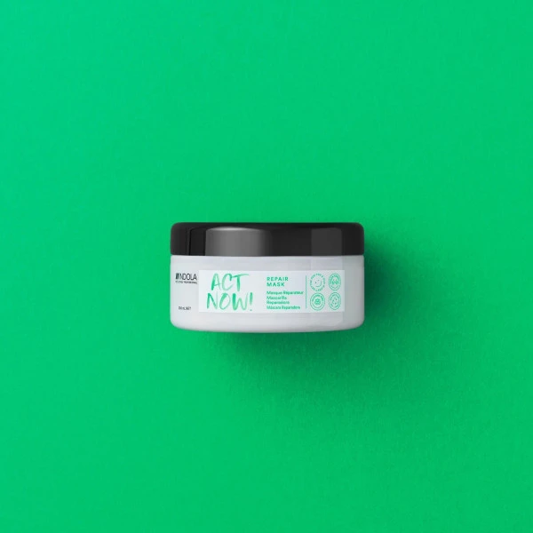 Pour un résultat optimal et une réparation complète des cheveux abîmés, utilisez ce masque avec le shampooing réparateur végan Act Now d’Indola.