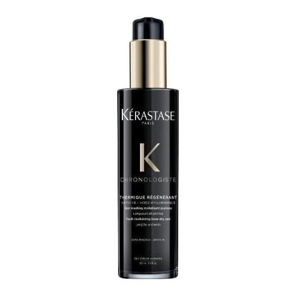Soin thermique régénérant Chronologiste Kérastase. Le soin thermique régénérant Chronologiste de Kérastase est un soin sans rinçage qui discipline les cheveux durant 24h et les protège des agressions extérieures et des appareils chauffants jusqu’à 230°C. Formulé à l’abyssine, l’acide hyaluronique et la vitamine E et de charbon, ce soin protecteur et disciplinant s’adapte à tous les types de cheveux. Sa texture légère sur le cheveux et fondante à l’application est délicatement parfumée de notes de rose, de cèdre et de musc.