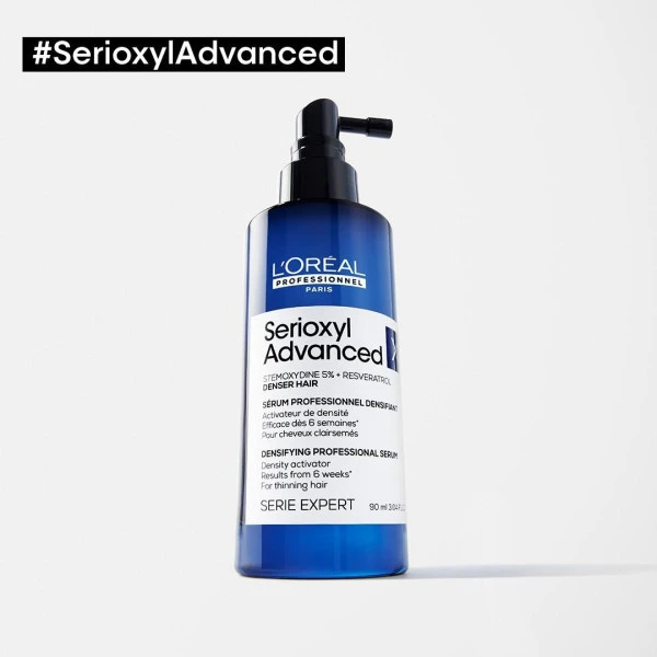 Sérum densifiant Serie Expert Serioxyl Advanced de L’Oréal Professionnel, pour les cheveux clairsemés.