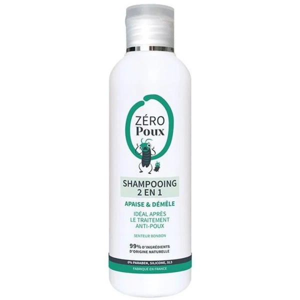 Shampooing 2-en-1 Zéro Poux Patrice Mulato, pour nettoyer les cheveux et les protéger contre les poux. Formulé avec 99% d’ingrédients d’origine naturelle, sans paraben, silicone, sls et peg.
