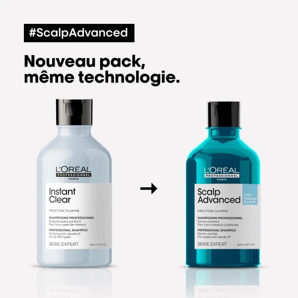 Le shampooing dermo-clarifiant anti-pelliculaire Scalp Advanced de L’Oréal Professionnel clarifie avec douceur et débarrasse efficacement de tous les types de pellicules. Il apporte une sensation d’apaisement immédiate du cuir chevelu. Quelques applications suffisent à réduire visiblement l’apparition des pellicules. Son parfum frais et rafraichissant offre une sensation de pureté.