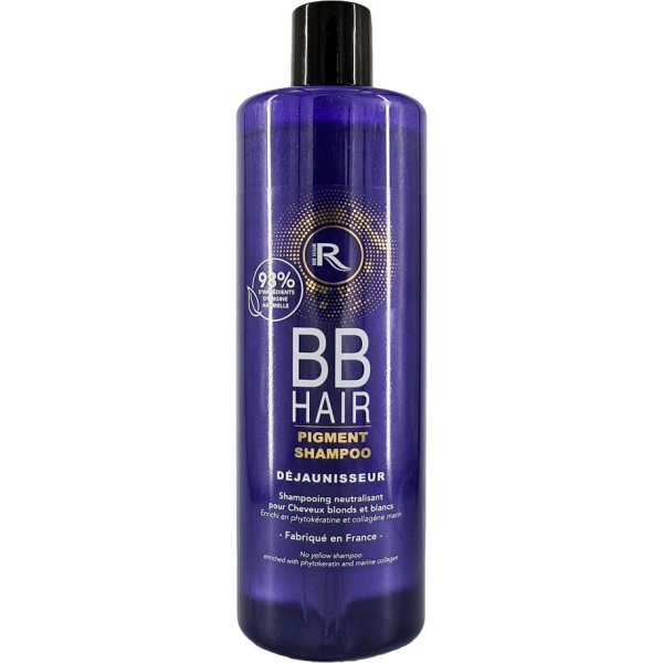 Le shampooing déjaunisseur BBHair sublime les cheveux blonds, colorés ou décolorés, gris et blancs. Il corrige les reflets jaunes indésirables. Sa formule à 98% d’ingrédients naturels, enrichie en phytokératine et collagène marin, hydrate et apporte de la brillance.