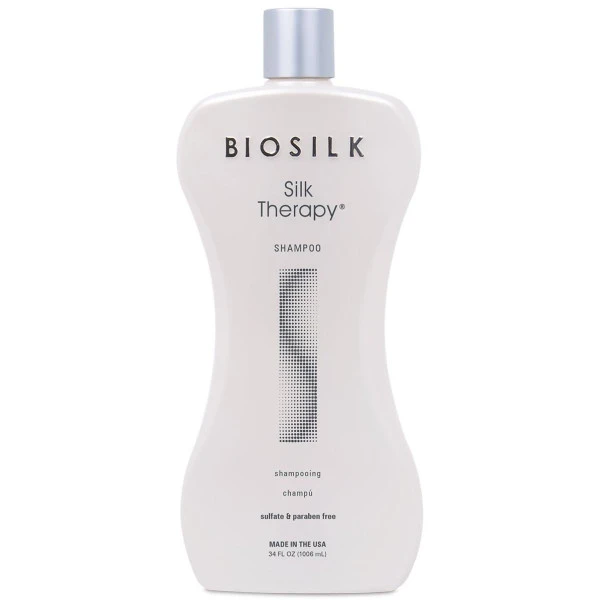 Le shampooing Silk Therapy de Biosilk nettoie en douceur tous les types de cheveux. Il débarrasse les cheveux des impuretés cumulées et les laissent propres et sains. Sa formule enrichie en protéine de soie permet de rendre les cheveux doux et brillants, tout en les hydratant.