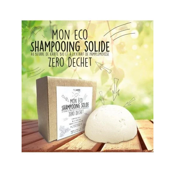Succombez à la tendance des shampooings solides avec Mon Eco Shampooing solide Zéro Déchet de Nuwee. Formulé avec du beurre de karité bio et de l’extrait de pamplemousse, il est adapté à tous les types de cheveux, pour les laver parfaitement et en douceur. Avec son emballage recyclable à 100%, sa composition naturelle et l’absence de résidus nocifs, Mon Éco Shampooing Zéro Déchet respecte vos cheveux et la planète.