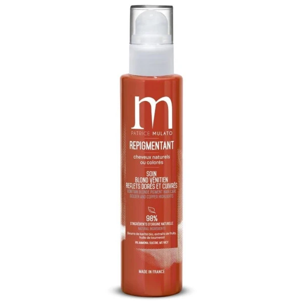 Soin repigmentant blond vĂ©nitien de Patrice Mulato, formulĂ© avec 98% d’ingrĂ©dients d’origine naturelle. LA solution naturelle pour apporter des reflets ou raviver l’intensitĂ© d’une couleur pendant 4 semaines.
