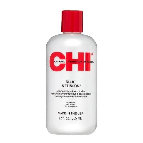 Le soin Silk Infusion Infra de CHI est un traitement sans alcool enrichi d’extrait de soie pure, de protĂ©ines de blĂ© et de soja. Ces actifs d’origine naturelle vont pĂ©nĂ©trer la fibre capillaire et contribuer Ă reconstruire le cheveu. Ce soin professionnel renforce et fortifie les cheveux pour les rendre plus mallĂ©ables, plus brillants et plus doux. Ce soin traitement peut ĂŞtre aussi utilisĂ© comme un protecteur thermique avant l’utilisation d’appareil Ă©lectriques chauffants (sèche-cheveux, lisseurs, boucleurs…).