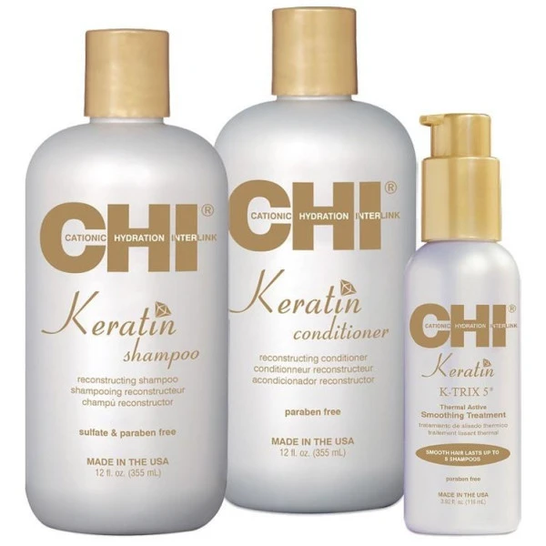 - Le conditionneur Keratin de CHI est formulĂ© Ă partir de kĂ©ratine. Il rĂ©gĂ©nère et protège la protĂ©ine de kĂ©ratine naturelle des cheveux. Il permet d’amĂ©liorer l’Ă©lasticitĂ© de la fibre capillaire et d’Ă©viter la casse. Il assure un niveau d’hydratation optimal et restaure douceur et brillance.
