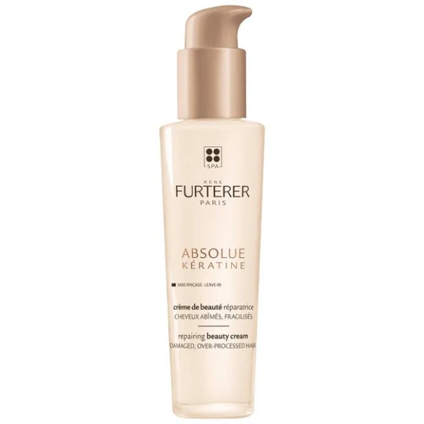 - Crème de beauté réparatrice sans rinçage Absolue Keratine René Furterer, pour réparer les cheveux secs et sensibilisés par les services en salon. Formulée à 99% d’actifs d’origine naturelle, elle est parfaite pour les cheveux sollicités, fatigués et cassants.